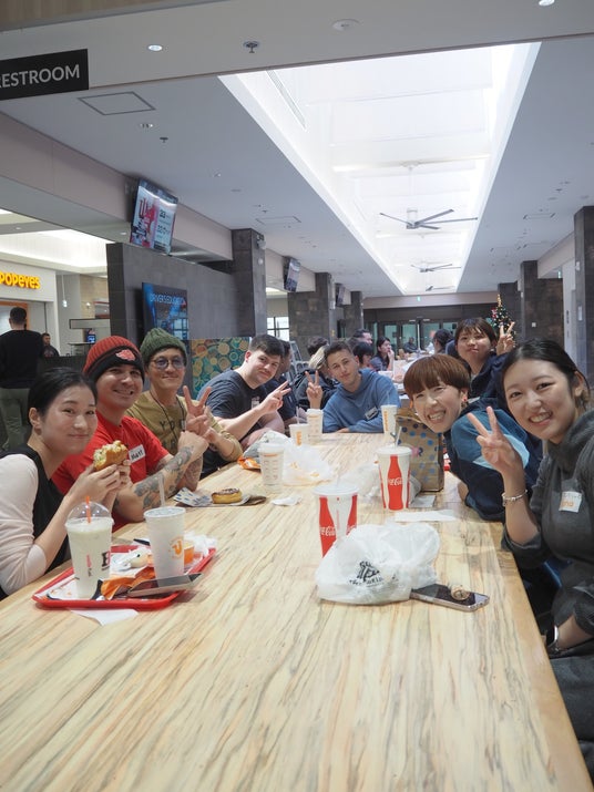 「英語で自分が食べたいものを注文できる」を最終ゴールに掲げ、学習の集大成として米海兵隊岩国航空基地内のフードコートを訪問。参加者は、実際に英語のみでファストフードの注文に挑戦しました。食事中には、基地内のボランティアスタッフとの交流も行われ、実践を通じた異文化コミュニケーションの楽しさを体感する貴重な機会となりました。