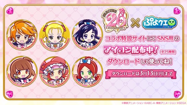 ◆『プリキュア』シリーズ×『ぷよぷよ!!クエスト』コラボ記念特設サイトにてSNS用にアイコン配布中