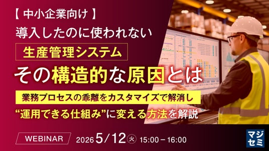 マジセミ株式会社は「【中小企業向け】導入したのに使われない生産管理システム、その構造的な原因とは」というテーマのウェビナーを開催します。