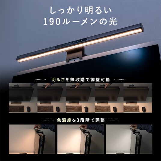 デスクライト USBライト モニターライト バーライト センサー搭載 最大190ルーメン 色温度調整 明るさ無段階 幅45cm