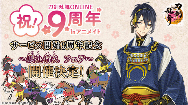 アニメイトでは2月3日~3月3日の期間中開催する、「馬九行久(うまくいく) フェア」に新たに3つの施策を追加して『刀剣乱舞ONLINE』サービス開始9周年をお祝いします。