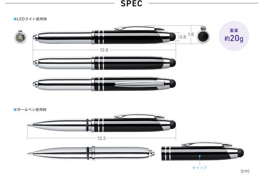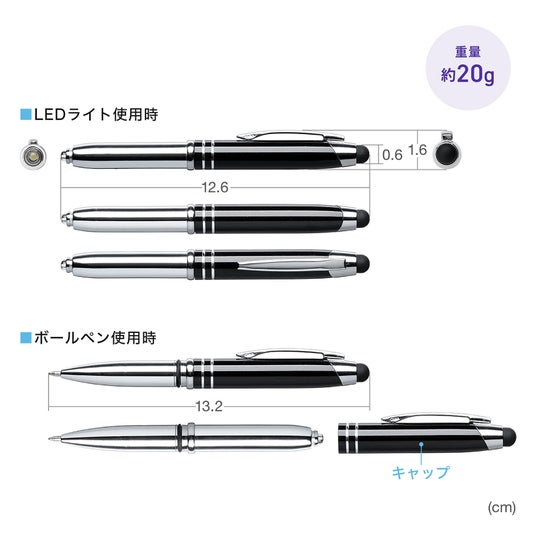 ・タッチペン、ボールペン、LEDライトが一体化