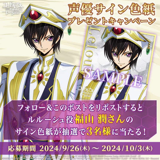■ルルーシュ役 福山潤さんのサイン色紙プレゼントキャンペーンを開催!