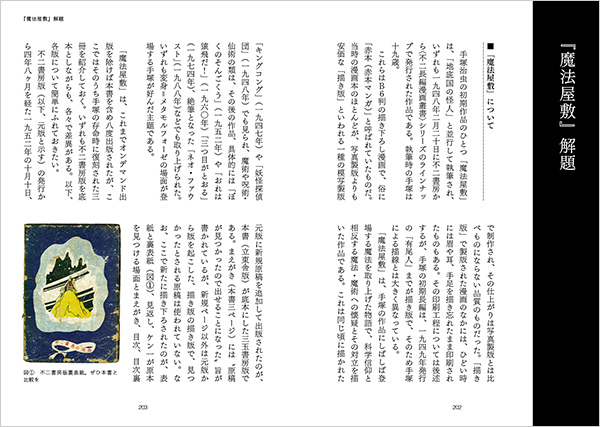 本書は三玉書房版(1951年)の『魔法屋敷』を底本に初復刻、この未発表原稿40枚すべてを巻末に掲載した決定版となっています。