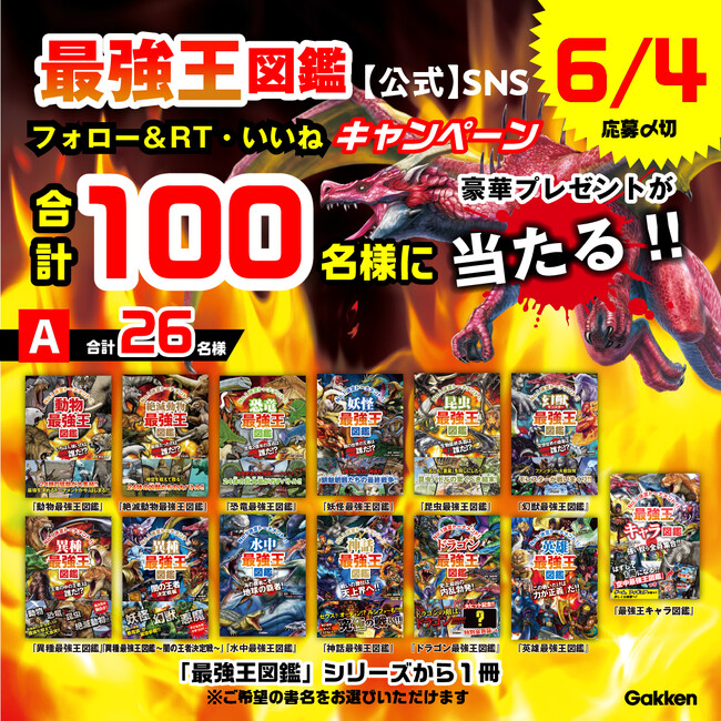 株式会社 学研ホールディングス(東京・品川/代表取締役社長:宮原博昭)のグループ会社、株式会社 Gakken(東京・品川/代表取締役社長:五郎丸徹)は、5月24日より「最強王図鑑」SNSフォロー&RT・いいねキャンペーンを開催いたします。