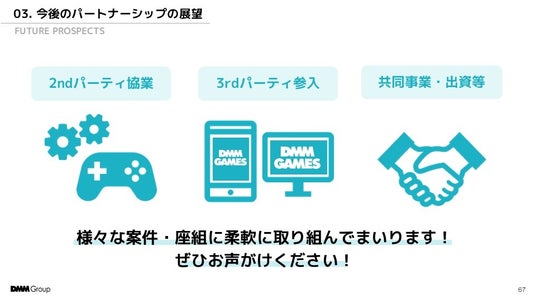 DMM GAMESでは、今後も積極的な投資や事業拡大を通じて、国内外のディベロッパー・パブリッシャー様にとって一層価値あるパートナーを目指してまいります。