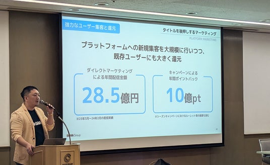 また、DMM GAMESプラットフォーム独自のキャンペーンや、トップページへの広告掲載により、展開タイトルへの送客が見込めることもご説明いたしました。