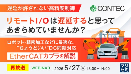 マジセミ株式会社は「【再放送】【遅延が許されない高精度制御】リモートI/Oは遅延すると思ってあきらめていませんか?」というテーマのウェビナーを開催します。