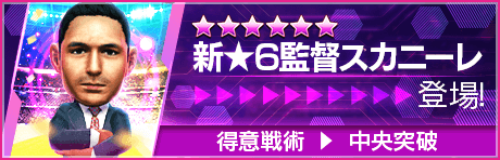 該当の選手を編成すると強くなるフォーメーションコンボ「砂塵の熱狂」と新監督アビリティを持つ新★6監督「スカニーレ」が登場!期間中に開催される特別ミッション「10試合行う」で獲得できますので、この機会をお見逃しなく!