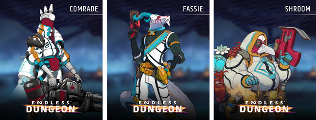 また、ゲーム完成までお待ちいただくプレイヤーの皆様への感謝として、PC版を予約購入された方々及びコンソール版の早期購入者に、3人のヒーロー「コムラッド」「ファッシー」「シュルーム」のカスタマイズ用スキンなど、追加無料コンテンツを提供させていただく予定です。