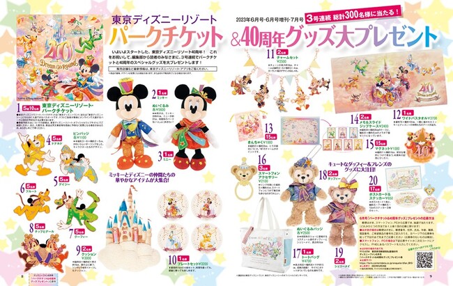 スペシャル企画は、「東京ディズニーリゾート パークチケット&40周年グッズ大プレゼント」。6月号・6月号増刊・7月号の3号連続で総計300名様に抽選で当たります! ふるってご応募ください。