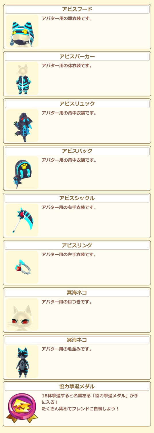さらに、対象モンスターを18体撃退すると、名誉ある「協力撃退メダル」が入手できるようになりました!