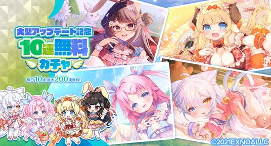 大型アップデート記念に、一部限定、新限定キャラもラインナップ入りの無料10連ガチャを20日間開催!