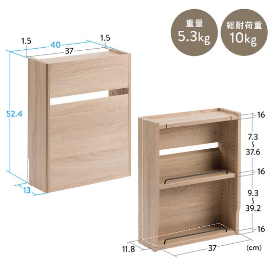 幅40cm・奥行13cm・高さ52.4cmの大型の木製タイプのケーブルボックス