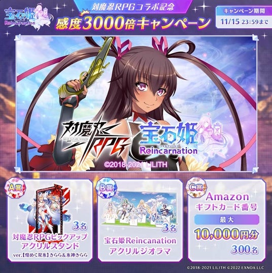 「宝石姫Reincarnation」と「対魔忍RPG」とのコラボを記念して、Amazonギフトカード番号やオリジナルグッズが抽選で当たる超豪華なRPキャンペーンを開催!