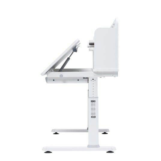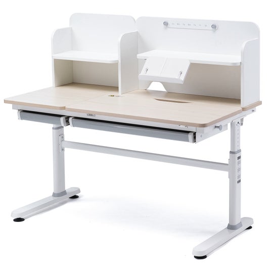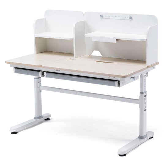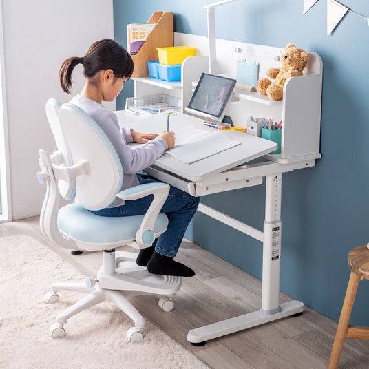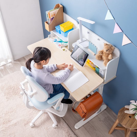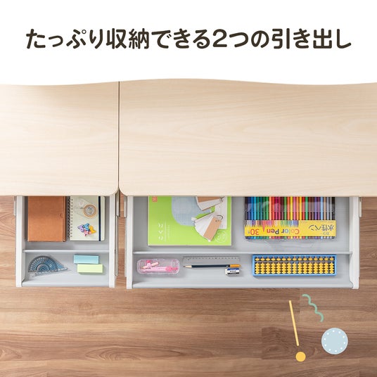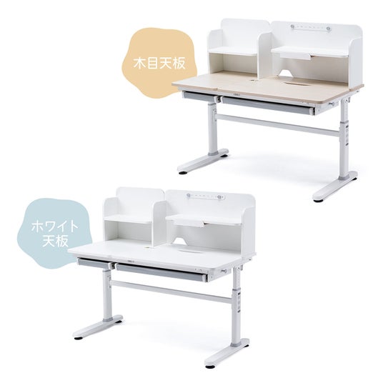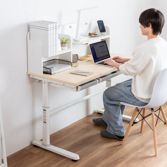 手動昇降式で簡単に高さを変更できるだけでなく、チルト天板や豊富な収納機能を備えた設計で、快適な学びと整理整頓をサポートする多機能学習机