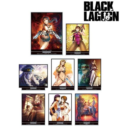 レヴィ、張、バラライカ、エダ、ロベルタ、ヘンゼル&グレーテル、シェンホア、ソーヤーの原作コマをパーツ付きのBIGアクリルスタンドに仕上げました。