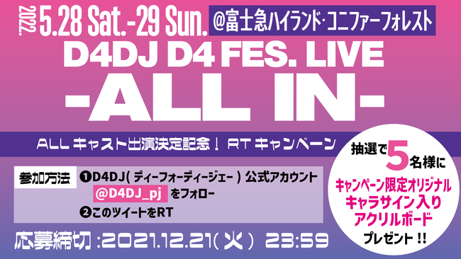 「D4DJ D4 FES. LIVE -ALL IN-」ALLキャスト出演決定記念!RTキャンペーン