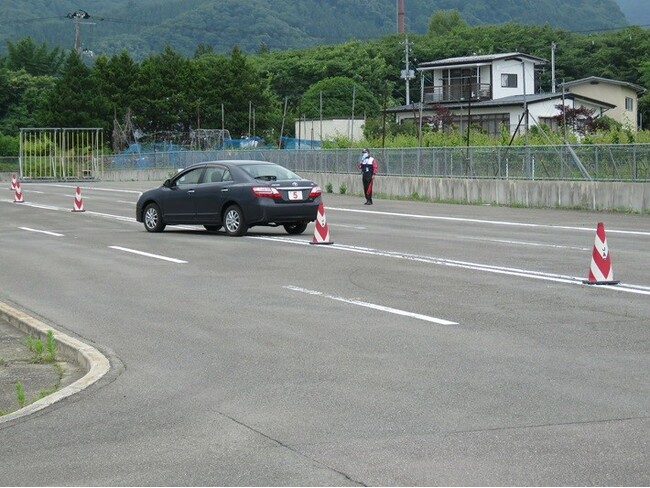 適切な運転姿勢・クルマの死角など運転の基本となる知識を確認するほか、見通しの悪い交差点の通過方法や危険を回避するためのブレーキ操作などのカリキュラムを受講者のマイカーを使用しておこないます。