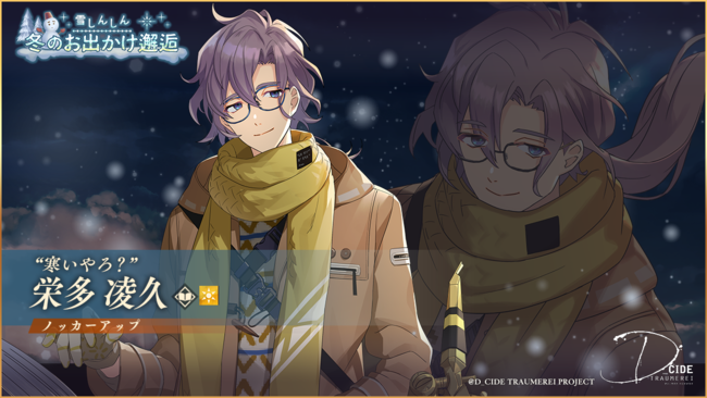 株式会社ブシロード(本社:東京都中野区、代表取締役社長:橋本義賢)は、株式会社サムザップ(本社:東京都渋谷区、代表取締役:桑田栄顕)、株式会社ドリコム(本社:東京都品川区、代表取締役社長:内藤裕紀)と共同で企画するゲームアプリ「D_CIDE TRAUMEREI/ディーサイドトロイメライ」にて、ゲーム内イベント「着ぐるみの悪夢 ~悪に惹かれた少女~」と、「雪しんしん 冬のお出かけ邂逅」を開催いたします。報道関係の皆様におかれましては、ぜひ本情報をお取り扱いいただけますよう、お願い申し上げます。
