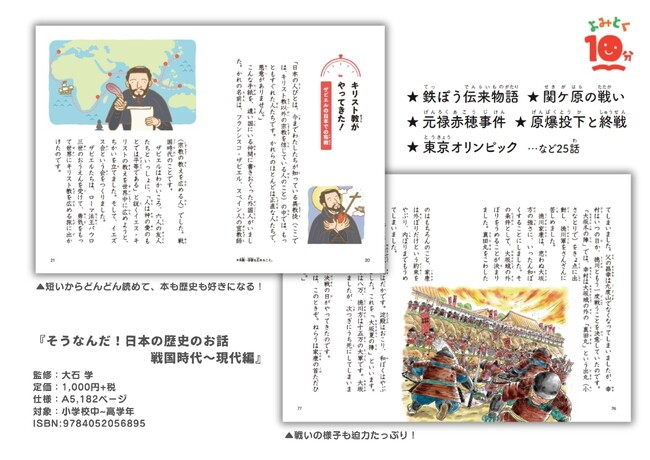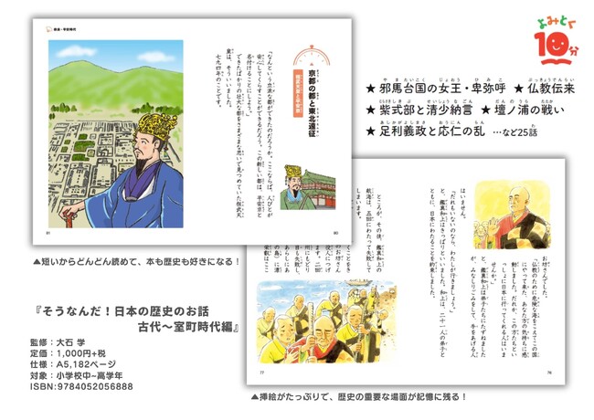 「10分で読めて朝読にぴったり!」「本が苦手な子どもがはまった!」と好評の「よみとく10分」シリーズ。今回新たに、「日本の歴史」がテーマの新刊、『そうなんだ!日本の歴史のお話 古代~室町時代編』『そうなんだ!日本の歴史のお話 戦国時代~現代編』が加わりました。
