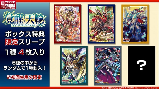 株式会社ブシロードは、12月24日(金)に「カードファイト!! ヴァンガードoverDress」の最新商品、ブースターパック第4弾 「覚醒する天輪」を発売することをお知らせいたします。報道関係の皆様におかれましては、ぜひ本情報をお取り扱いいただけますようお願い申し上げます。