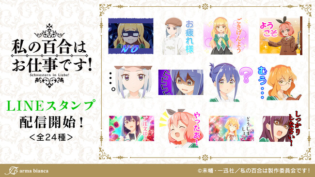 株式会社アルマビアンカはTVアニメ「私の百合はお仕事です!」のLINEスタンプを配信いたします。