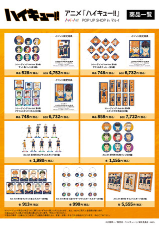 漫画・アニメのオリジナルグッズを販売する「AMNIBUS」を運営する株式会社アルマビアンカは「アニメ『ハイキュー!!』Ani-Art POP UP SHOP in マルイ」を開催いたします。