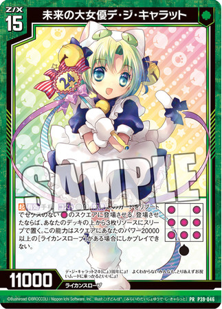 イベント景品やお買い物の特典として「デ・ジ・キャラット」デッキで4枚使用することができる「未来の大女優デ・ジ・キャラット」のイラストパラレル版をプレゼント!