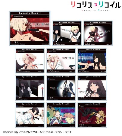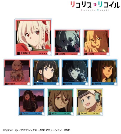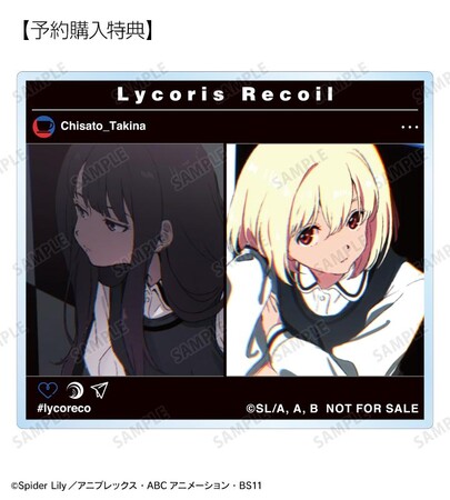 錦木千束、井ノ上たきな、クルミのアイキャッチをSNS風デザインのアクリルカードに仕上げました。