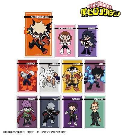 爆豪勝己、麗日お茶子、ミッドナイト、エンデヴァー、ミルコ、ファットガム、荼毘、スピナー、トゥワイス、オーバーホール、リ・デストロをカードステッカーに仕上げました。