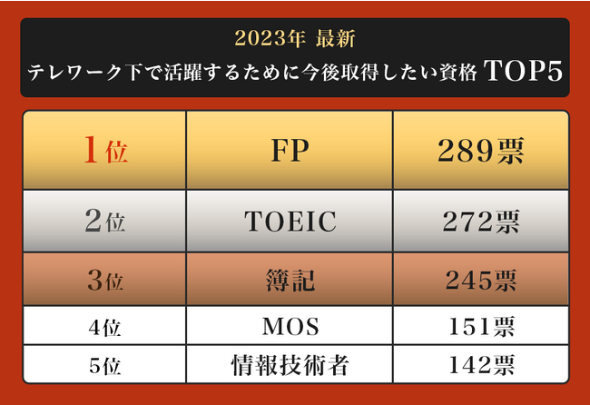 テレワーク下で活躍するために今後取得したい資格TOP5