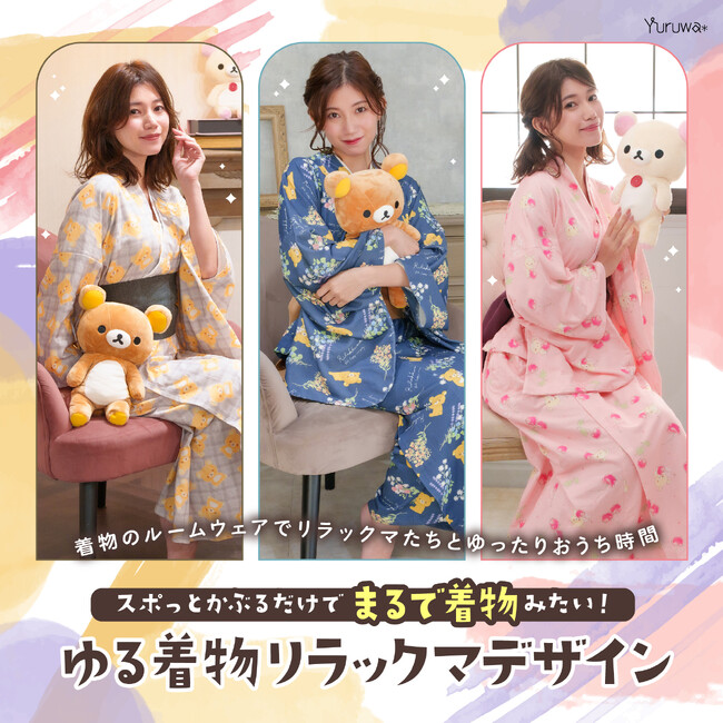 柔らかいスウェット素材とワンピース仕様で気軽に和服を楽しめる「ゆる着物」。 デザインは3種類、サイズはレディースM/L/LLから選べます!リラックマたちとゆったりおうち時間を楽しみませんか?