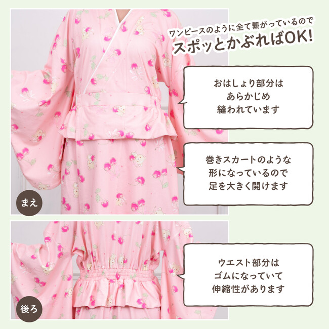 柔らかいスウェット素材と、上からスポッと着ることができるワンピース仕様で気軽に和服を楽します!