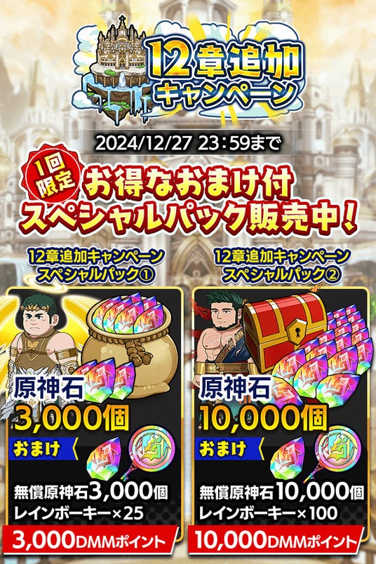 レインボーキーがセットになった、1回購入限定の「12章追加キャンペーン」スペシャルパックが2種期間限定で登場!