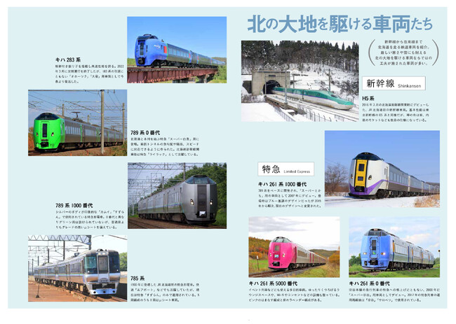 北海道を走っているすべての特急列車、観光列車を取り上げるとともに、普通列車から特急まですべての車両も解説しているので、どの列車に乗って旅に出たらいいのか、北海道でめぐり合った列車はどの車両かがわかります。