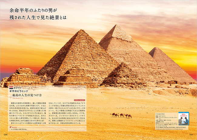 巻頭特集では、「ファンタジー作品」、「ひと作品のなかでいくつもの国を巡る映画」、「アニメーション映画」の3つのテーマで映画をピックアップ。ファンタジー作品の代表作としては『ハリー・ポッター』や『ロード・オブ・ザ・リング』、世界をまたにかける映画といえば『007』や『ミッション:インポッシブル』、アニメーション映画は『天空の城ラピュタ』や『もののけ姫』など、不朽の名作を多数掲載しています。