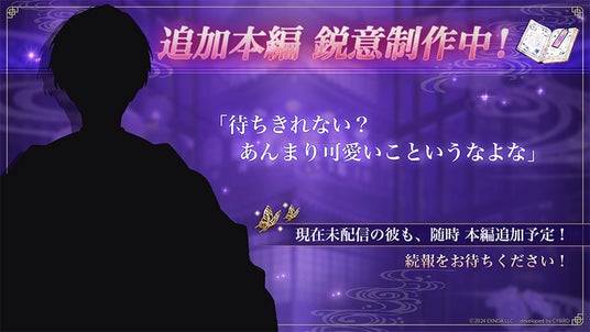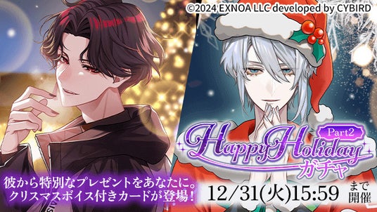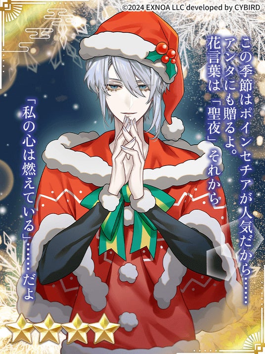 DMM GAMESを運営する合同会社EXNOA(本社:東京都港区、CEO:村中 悠介、URL:https://games.dmm.com/)は、オトナの女性向け恋愛ゲーム「夢幻楼と眠れぬ蝶」にてクリスマスボイス付きのカードが登場する「Happy Holiday ガチャPart2」を開催いたしました。また、次回本編追加となるキャラクターの情報を一部先行公開いたします。