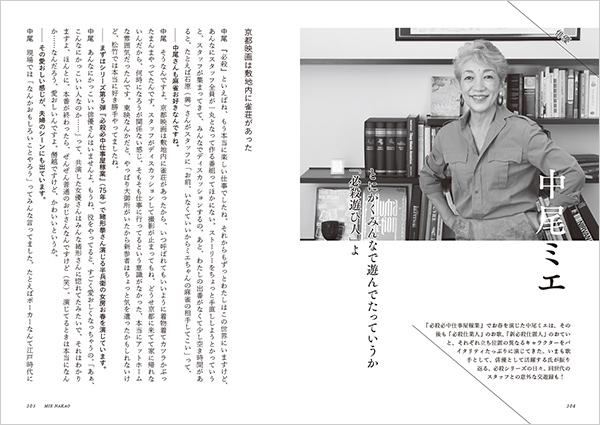 前回未収録のプロデューサーから始まって再録ふくめた9人の脚本家を中心に題字、音楽、タイミング(色彩補正)など撮影所以外の関係者まで徹底取材。さらには現場を支えた京都映画(現・松竹撮影所)のスタッフ座談会や初期作を手がけた大熊邦也監督の独占インタビューも掲載。キャストは中尾ミエ、中村敦夫、火野正平と歴代シリーズを彩った3人が登場し、インタビューの名手・高鳥都がそれぞれの必殺人生を掘り起こす。まさに中村主水初登場の『必殺仕置人』50周年を飾るにふさわしい充実の内容でお届けいたします!