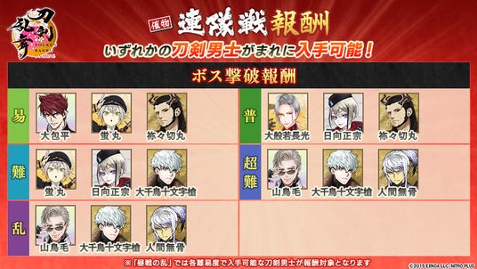 ※難易度ごとに入手できる刀剣男士が異なります。