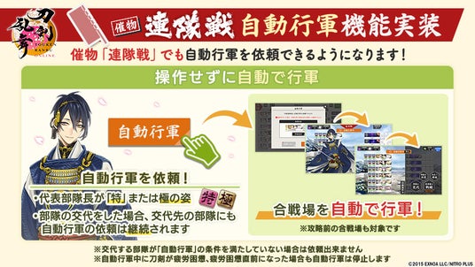 また、「連隊戦」へ新たに「自動行軍」機能を実装いたしました。