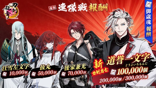 戦闘に勝利して入手できる「御歳魂(おとしだま)」を集めることで、新刀剣男士「道誉一文字(cv. 楠 大典)」や刀剣男士「江雪左文字(こうせつさもんじ)(cv. 佐藤拓也)」「抜丸(ぬけまる)(cv. 梶原岳人)」「後家兼光(ごけかねみつ)(cv.福山潤)」、便利道具「異去探索道具(いこたんさくどうぐ)」「断片結合剤(だんぺんけつごうざい)」など、さまざまな報酬が獲得できます。