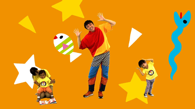 実写動画では、パパママ、お子さんに大人気の体操マスター、よしお兄さんこと、小林よしひささんが子どもたちと楽しく体操します。