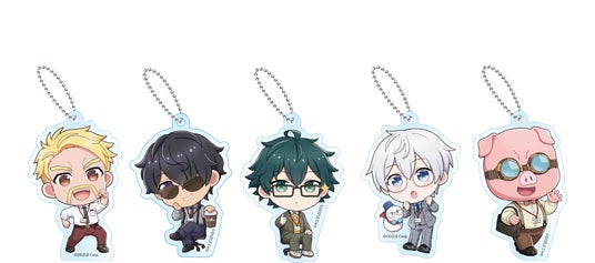 ミニサイズのメンバーがスーツと職業コスチュームを着ているアクリルキーホルダーです。