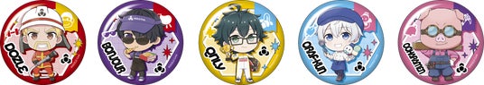 スーツを着ているメンバーがかっこいい缶バッジ5種と、ミニサイズのメンバーがスーツと職業コスチュームを着ている缶バッジ10種があります。