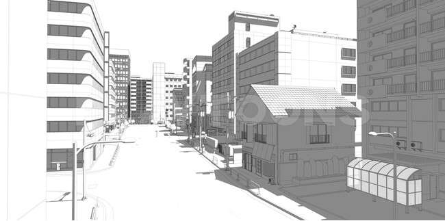 3Dモデルの色はWEBTOON(ウェブトゥーン)や漫画の雰囲気に合わせてカスタマイズ可能で、街並みのシーンに万能に使える3D背景です。