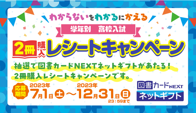 『わからないをわかるにかえる 学年別』シリーズ、『わからないをわかるにかえる 高校入試』シリーズの中から各1冊の計2冊購入で応募できるキャンペーンを開催中。