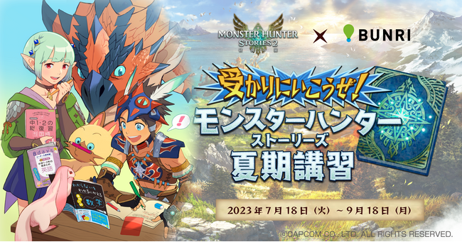 株式会社 学研ホールディングス(東京・品川/代表取締役社長:宮原博昭)のグループ会社、株式会社 文理(東京・品川/代表取締役社長:安達健一)は、株式会社カプコン(大阪・中央区/代表取締役社長 最高執行責任者 (COO):辻本春弘)の人気ゲーム「モンスターハンター ストーリーズ」シリーズとコラボした学習サイト「受かりにいこうぜ!モンスターハンター ストーリーズ夏期講習」を、2023年7月18日(火)~9月18日(月)の期間限定で公開します。