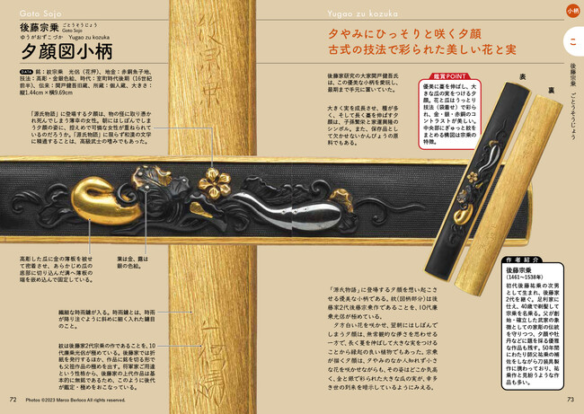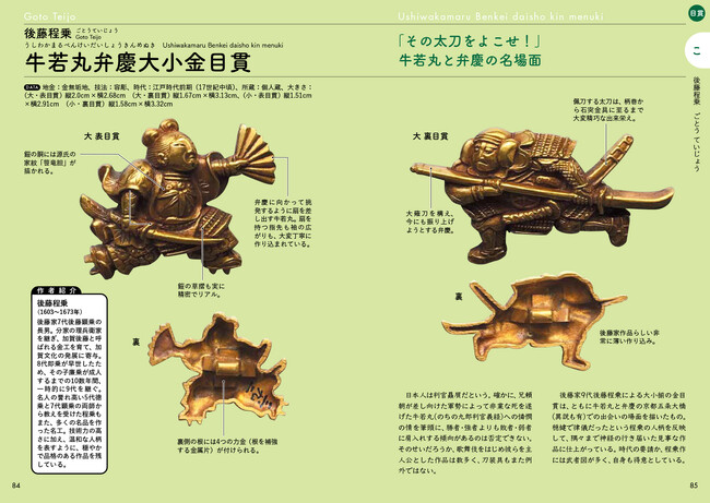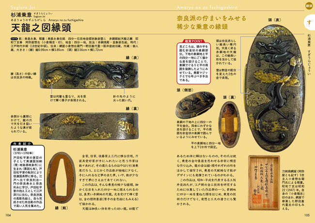 本書は刀装具研究家の著者による刀装具の名品を紹介した第2弾。前回紹介できなかった作品の数々を多数掲載し、作品の背景や舞台裏などを紹介したコラムも充実させています。初心者でも楽しめるよう時代別や地域別ではなく、作家・ジャンルごとに基本的に五十音順で紹介しています。刀だけでなく刀装具を知ることで日本刀や日本文化への理解をさらに深められる一冊です。