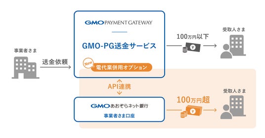 GMOインターネットグループのGMOペイメントゲートウェイ株式会社(代表取締役社長:相浦 一成、以下GMO-PG)は、GMOあおぞらネット銀行株式会社(代表取締役会長:金子 岳人、代表取締役社長:水町 哲、以下GMOあおぞらネット銀行)との連携により、2026年2月2日(月)より、「GMO-PG送金サービス」において「電代業併用オプション」の提供を開始します。